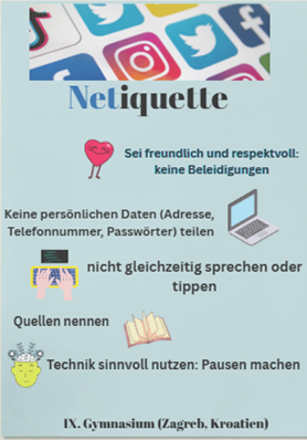 Na ovim fotografijama prikazane su aktivnosti koje su svi učenici iz partnerskih škola dosad zajedno ostvarili koristeći razne digitalne alate. U rujnu su u Canvi izradili „pokrivač od lijepih riječi“ („Unsere bunte Decke der guten Worte“) i tako obilježili Europski dan jezika. Učenici su učili i o pravilima netikete i na svom plakatu istaknuli pravila lijepog ponašanja prilikom online komunikacije. U listopadu je svaka škola izrađivala logo u Canvi a ovdje je prikazan pobjednički logo iz Turske. Nakon zajedničkog kreiranja kvizova o partnerskim državama u Kahoot!-u, naši su ih učenici u Učionici budućnosti odigrali 4. studenoga 2025. u videopozivu s učenicima iz Francuske.