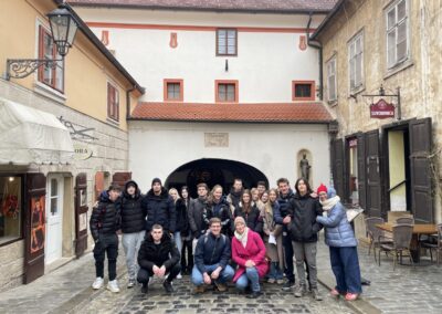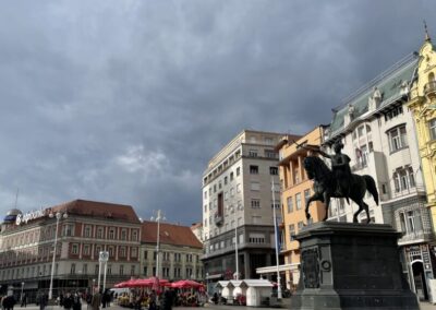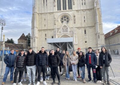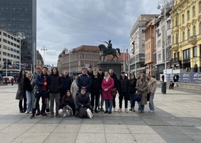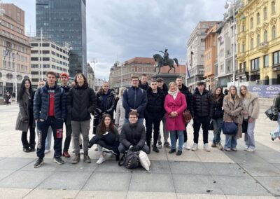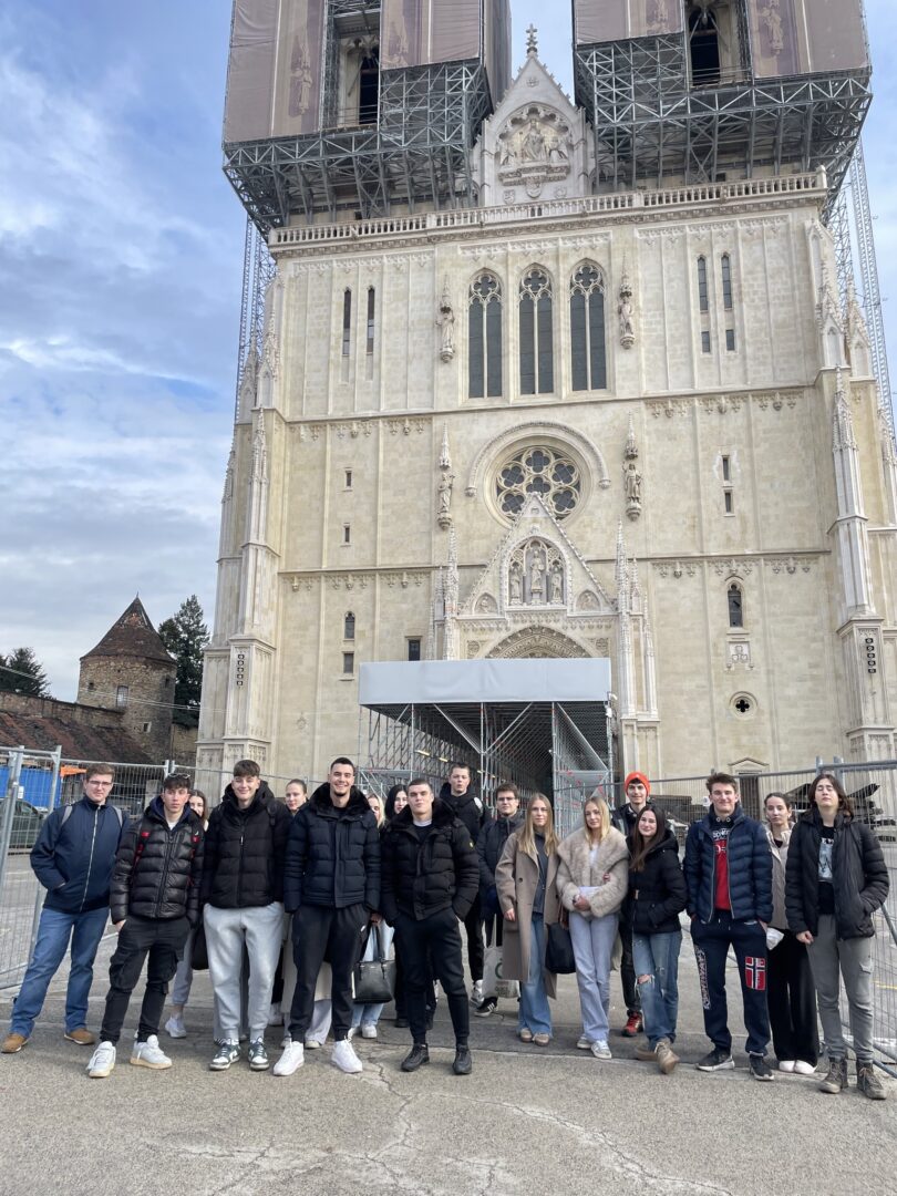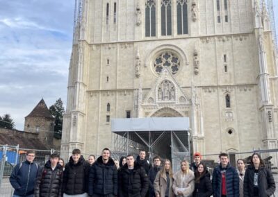 U ulozi turističkih vodiča na njemačkom jeziku, učenici su s profesoricom šetnju započeli kod Kule Lotrščak o kojoj je jedna skupina i govorila. Predstavili smo i zagrebačku uspinjaču kao jednu od najkraćih uspinjača na svijetu, naučili smo govoriti i o Strossmayerovom šetalištu, Markovoj crkvi, Kamenitim vratima, Tkalčićevoj ulici, Katedrali, Mariji Jurić Zagorki, Krvavom mostu, a šetnju smo završili na Trgu bana Josipa Jelačića gdje su učenici čuli od kuda potječe ime Zagreb, zanimljivosti vezane za sam Trg, a govorilo se i o Zrinjevcu, Lenucijevoj potkovi te o prvom hrvatskom kralju – Kralju Tomislavu.